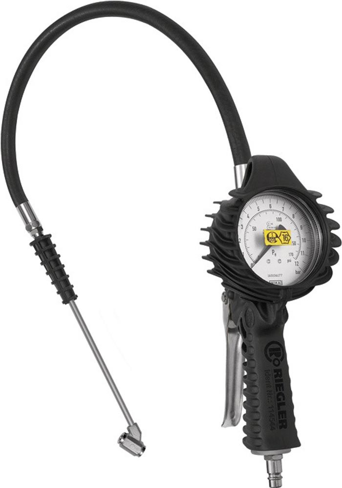 Standardausführung · robuster Standard-Handreifenfüllmesser mit vollgummierter Schutzhülle · Druckmanometer mit bar- und psi-Anzeige · Schlauchlänge: 50 cm · Schlauchanschluss G 1/4, drehbar