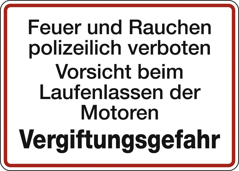 | Ausführung Hinweisschild | Feuer und Rauchen polizeilich verboten... |