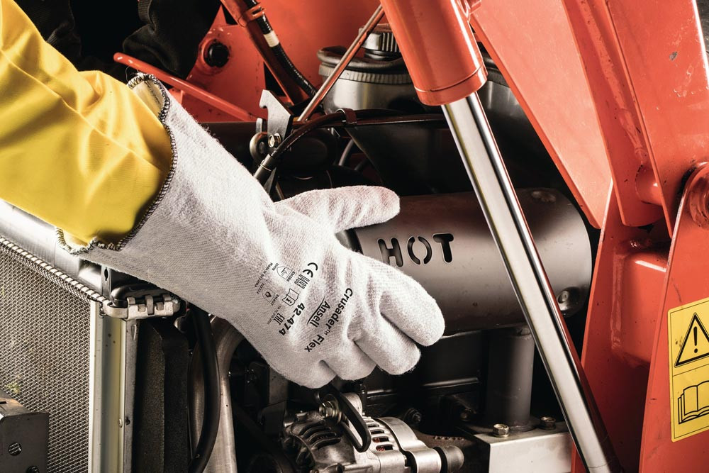 nach EN 388 · EN 407 · Kat. III · Material: Polyester / Polyester-Vlies / Baumwolle · mit Nitrilbeschichtung · geeignet für eine kurze Handhabung von heißen Objekten bis 200 °C · Kontakthitzefestigkeit Level 2 · wirksamer Schutz vor Schnitt- und Schürf- sowie anderen leichten Verletzungen · erhöhte Griffsicherheit bei trockenen und verölten Flächen · Komfort und Flexibilität · schweißabsorbierendes Vliesstoff-Innenfutter · Anwendung: Handhabung von Heißglas, Handhabung von heißen Gussstücken und Holzplatten, Entnahme von Gummireifen, Bändern und Profilen aus der Vulkanisiermaschine, Vulkanisierung, Kalandrieren, Entnahme von sterilisierten Produkten aus Autoklaven, FDA Zulassung im Bereich Food (Pizza, Bäcker, etc.)