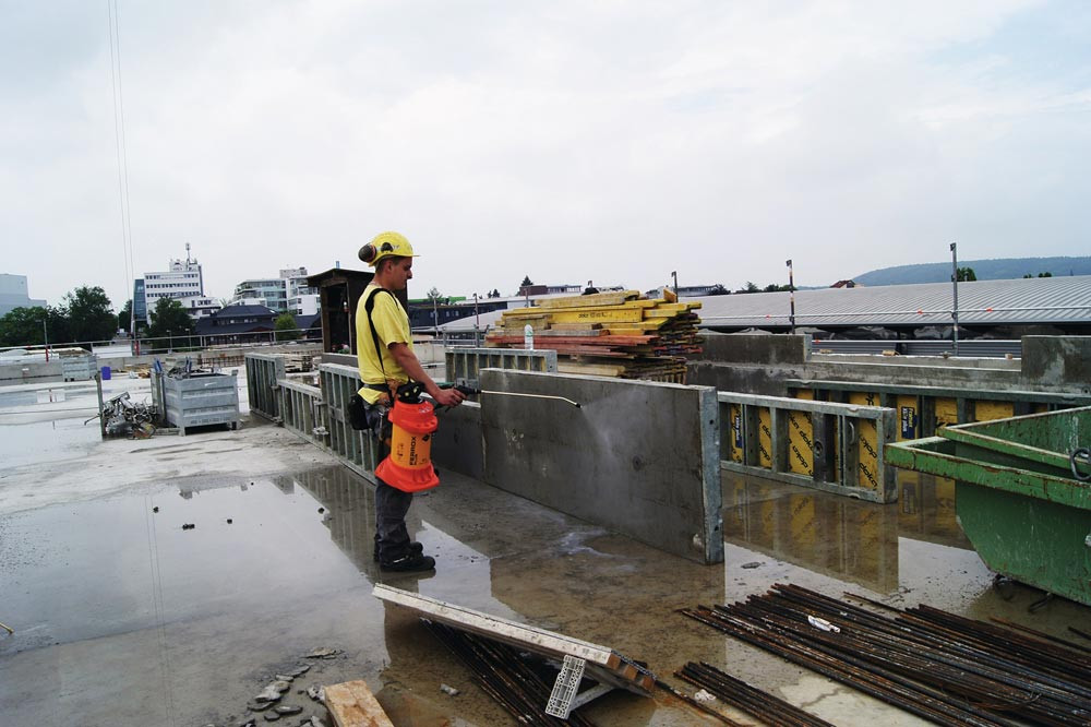 FPM-Dichtung · Messing-Flachstrahldüse 80-01 mit Feinfilter · Messing-Spritzrohr 50 cm · 360° drehbar · Spiralschlauch, 2,5 m mit Sicherheitsverriegelung · ergonomisches Abstellventil mit Filter · Messingpumpe ø 38 mm · Trichterabdeckung