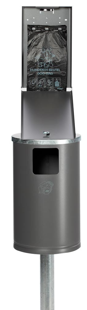 Hundetoilette, Tütenspender inkl. Abfallsammler u. Standrohr, BxTxH 350x480x2000 mm, verzinkt u. lackiert DB703, Verschließbar