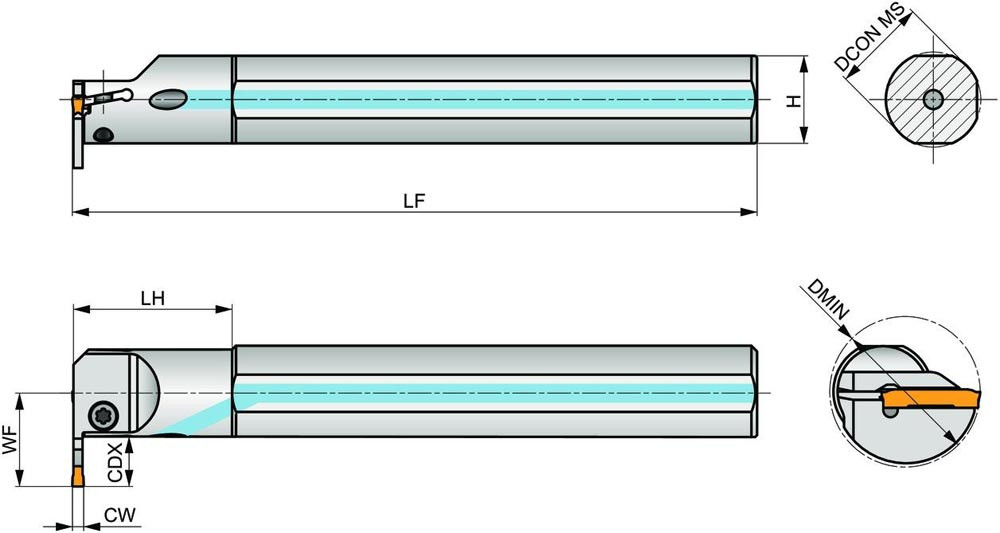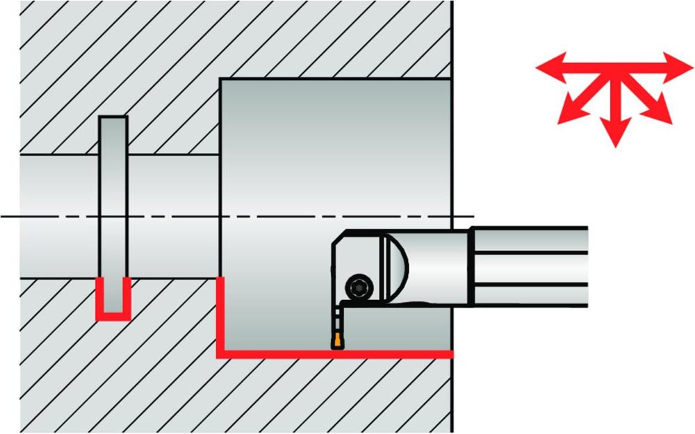 GL2-A32SGL-06-40 ist ein linker Innendrehhalter mit Innenkühlung für GL Wendeschneidplatten und verstärktem Körper und Schneide für Prozesssicherheit.Geeignet zum Inneneinstechen · Drehen und Profilieren.Körper für längere Standzeit oberflächenbehandelt.