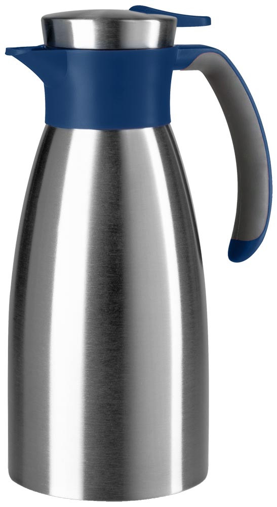 Isolierkanne aus Edelstahl spülmaschinenfest, 1,5 l, Easy Open mit Edelstahlkolben, Edelstahl/blau EP560607