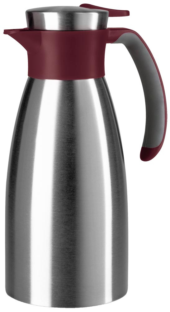 Isolierkanne aus Edelstahl spülmaschinenfest, 1 l, Easy Open mit Edelstahlkolben, Edelstahl/rot