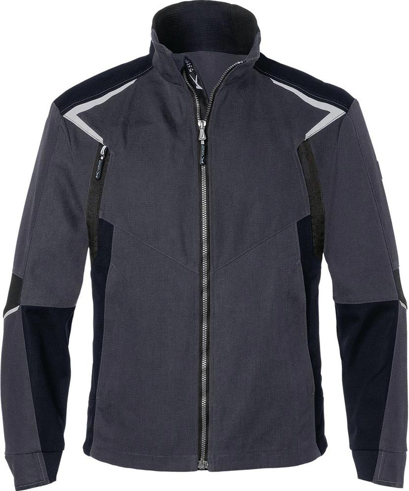 65 % Polyester / 35 % Baumwolle, 260 g/m² · 2 abgedeckte Seitentaschen mit Reißverschluss · 2 diagonale Brusttaschen mit Reißverschluss · rechts: Smartphone-Innentasche mit Klette · sichtbarer Frontreißverschluss mit kombinierter Kinn-und Windschutzblende · alle Reißverschlusstaschen mit Zippergarage und nach innen gedrehter Spirale gegen Schmutz und Verkratzen · Ärmelbündchen und Jackensaum mit Stretcheinsatz · verlängerter Rücken · innovative Gewebebindung für extreme Robustheit und besondere Optik · ergonomisch geformte, griffige Zipper · Belastungspunkte mit Riegeln gesichert