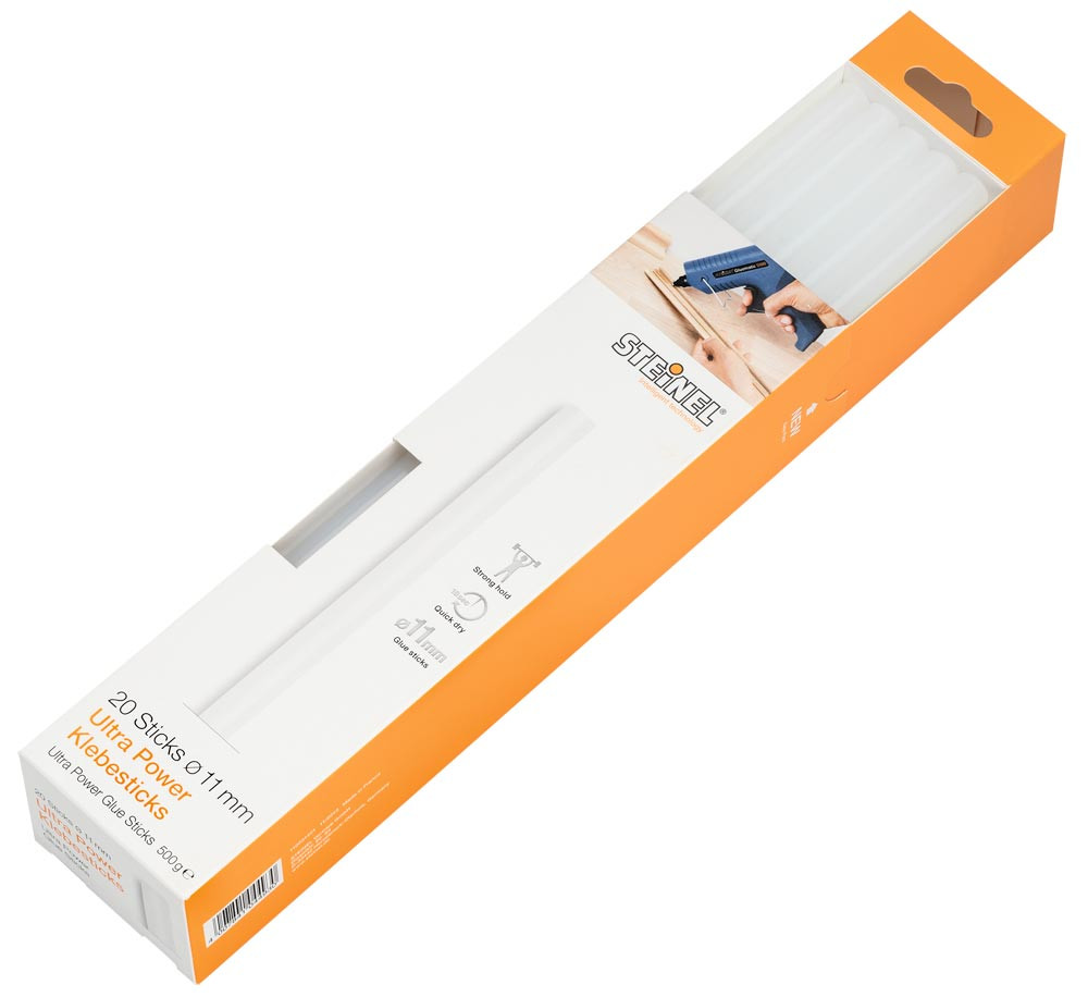 20 "Klebesticks Ultra Power" ∙ Lösungsmittelfrei · Belastbar nach ca. 60-90 Sek ∙ Fest nach 15 Sek ∙ Verarbeitungstemperatur 200 °C ∙ Ideal für alle Bastel- und Heimwerkerarbeiten (Glas, Gummi, Holz, Keramik, Leder, Papier, Pappe / Kartonagen, PP, Textilien, Metall, ABS, Melamin, PA, PC, PE, PET, PMMA, POM, PVC und Hart-PVC)