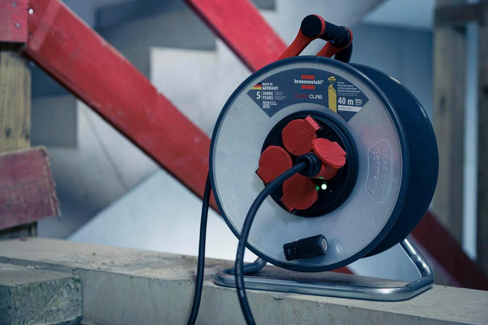 Die SteelCore Kabeltrommel SC 4100 von Brennenstuhl eignet sich dank robustem RN-Kabel und der Schutzart IP44 perfekt für die ständige Verwendung im Außenbereich · beispielsweise auf Baustellen. Die Kabeltrommel mit 4 Schutzkontakt-Steckdosen (spritzwassergeschützt · mit selbstschließenden Deckeln) und extra robustem Schutzkontakt-Stecker überzeugt zudem durch folgende Eigenschaften: Trommelkörper aus Stahlblech · Vorder- und Rückseite schutzisoliert für den robusten Betrieb Innovativer Tragegriff ″cablepilot″ für perfekte Kabelführung Großer · stabiler Klapp-Drehgriff zum mühelosen Auf- und Abrollen des Kabels Trommelkörper kälteschlagbeständig bis -25 °C Unempfindlich gegen Benzine und Öle RN-Kabel ist sehr robust · ölbeständig und für den professionellen Einsatz besonders geeignet RN-Kabel ist zugelassen für erschwerte Baubedingungen nach VDE 0100 Teil 704 Überhitzungsschutz mit Kontrollleuchte bei Überhitzung und Überlastung Mit optischer Bereitschaftsanzeige im Steckdoseneinsatz Schutzart: IP44 Kabellänge: 40m Kabelbezeichnung: H07RN-F 3G1,5 Kabelfarbe: schwarz Betriebsmittel der Kategorie 2 (K2 DGUV 203-005): Einsatz für den rauen Betrieb mit hohen mechanischen · physikalischen und chemischen Einwirkungen · Kategorie 2 (K2 DGUV 203-005): Einsatz für den rauen Betrieb mit hohen mechanischen · physikalischen und chemischen Einwirkungen
