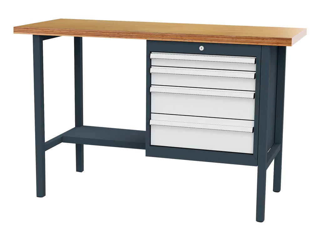 Kastenwerkb., Pl. Multiplex 40 mm, 4 Schubl.1x75, 1x100, 1x150, 1x175 mm, 1 Fachboden, BxTxH 1500x600x960 mm, 7016/7035 EP560911