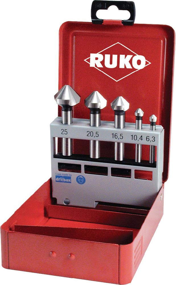 DIN 335 C · 3 Schneiden · 90 ° Senkwinkel · je 1 Senker 6,3-10,4-16,5-20,5-25,0 mm · in Metallkassette