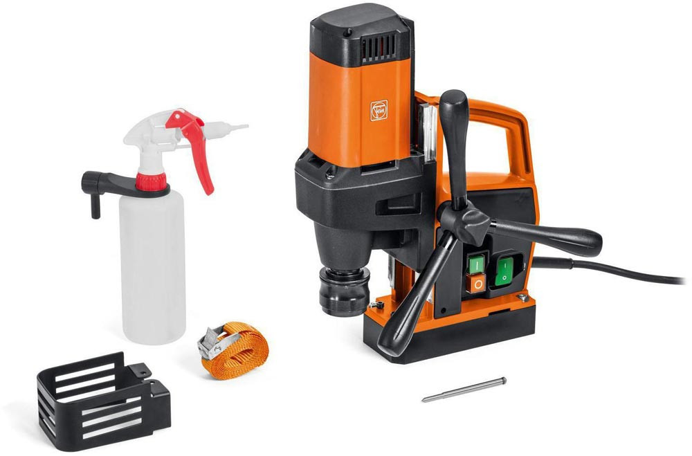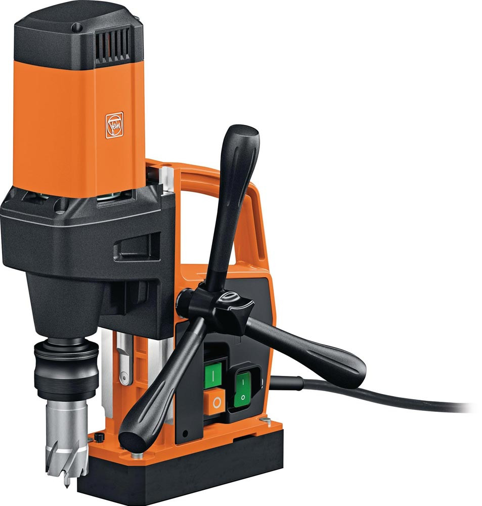 · Kabel mit Stecker 3m· Kernbohrerwechsel werkzeuglos· Leerlaufdrehzahl 700min-1· Leistungsabgabe 770W· Produktvorteile Für den harten Einsatz dank höchster Verarbeitungsqualität und innenliegender Motorkabelführung./Kompromisslose Lebensdauer durch extra langlebiges Getriebedesign mit bis zu 400 Stunden Betriebszeit./Leichtgewichtig mit FEIN Hochleistungsmotor und hohem Drehmoment für sämtliche Kernbohrarbeiten./Hervorragendes Preis-/ Leistungsverhältnis./Werkzeugloses Kernbohrer-Schnellwechselsystem./Innenkühlung./Hohe Magnethaltekraft./Seitenwechselbares Vorschubhandrad./Gute Zugänglichkeit in beengten Bediensituationen./Personen-Schutzschalter.· Kernbohrer Bohrtiefe max. 50mm
