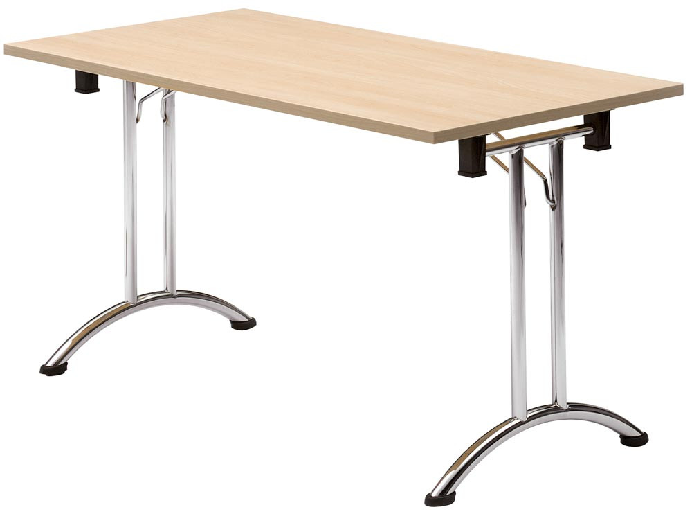 Klapptisch, BxTxH 1400x700x720 mm, T-Fuß-Gestell verchromt, gebogene Kufen, melaminharzbesch. Platte ahorn
