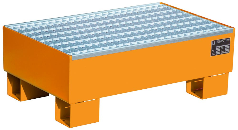 Kleingebinde-Auffangwanne, BxTxH 800x510x295 mm, Auffangvolumen 61 l, mit Gitterrost, 2x60 l-Fass, RAL 2000 EP511374