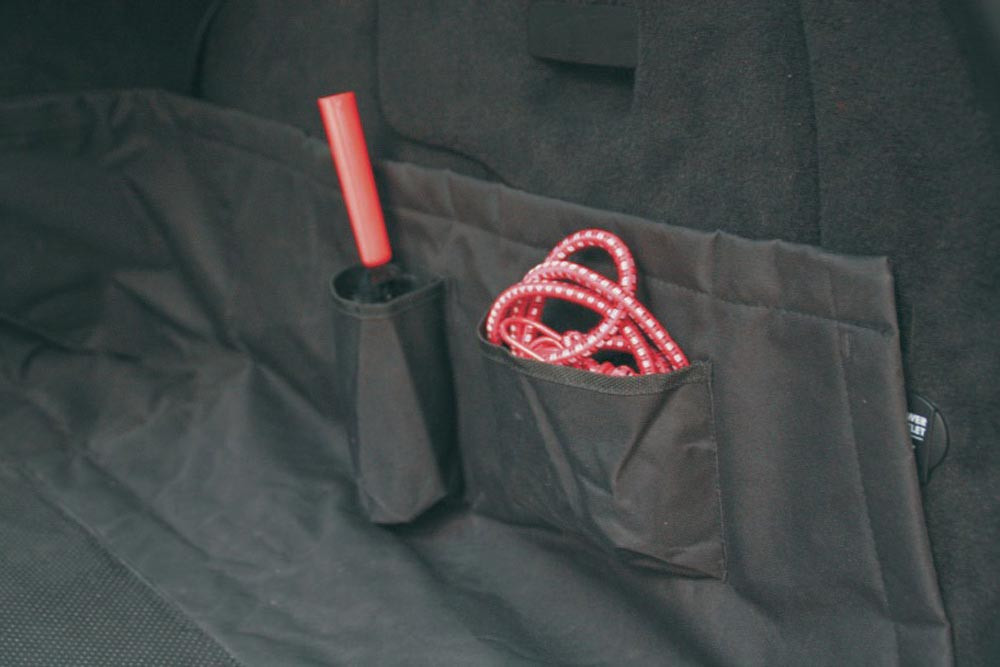 schützt den Kofferraum und die Innenverkleidung vor Schmutz, Nässe und Tierhaaren · flexible Passform durch Klettverschlüsse · einfach Befestigung mit Klettband und Haltebändern · mit Schlitzen für Hundeleinen und Sicherheitsgurte · kein Verrutschen der Ladung dank Antirutsch-Einsatz · wasser- und schmutzabweisend · diverse Taschen für Utensilien etc. · praktischer Stoßstangen- und Barriereschutz gegen Kratzer · Ladekanten- inkl. Barriereschutz 90 x 60 cm