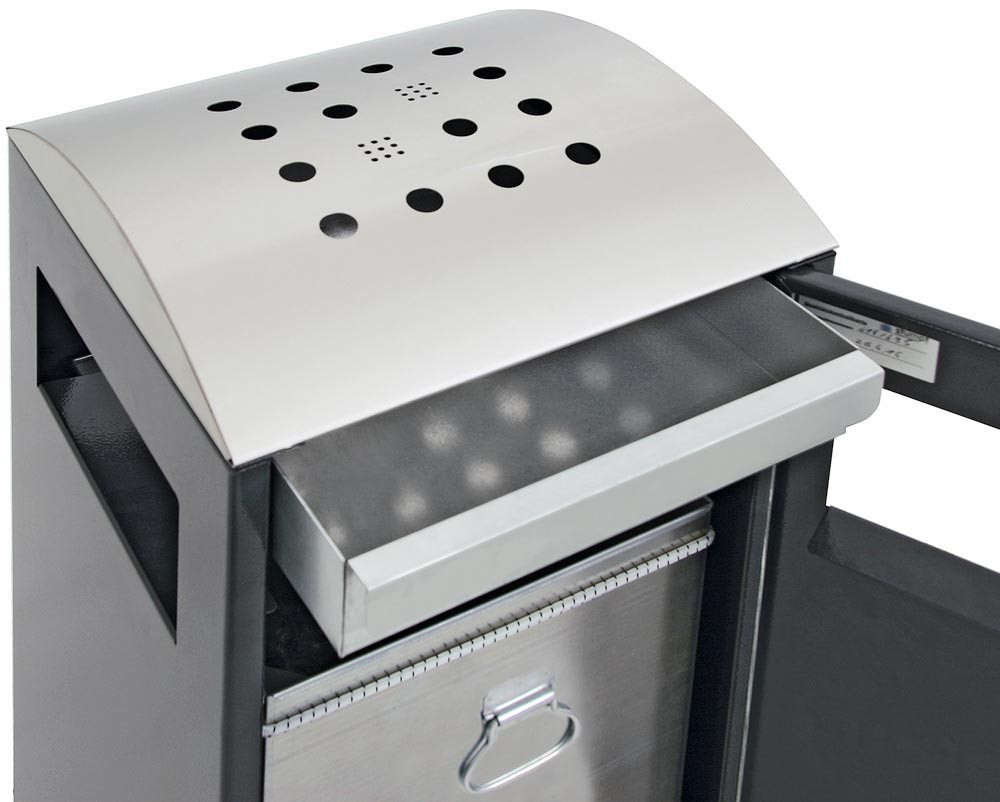 Kombi-Ascher, Edelstahl Kopfelement, Ascherlade 9 l, verz. Inneneimer Vol. 90 l, RAL 7016, BxTxH 450x450x1060 mm EP537313