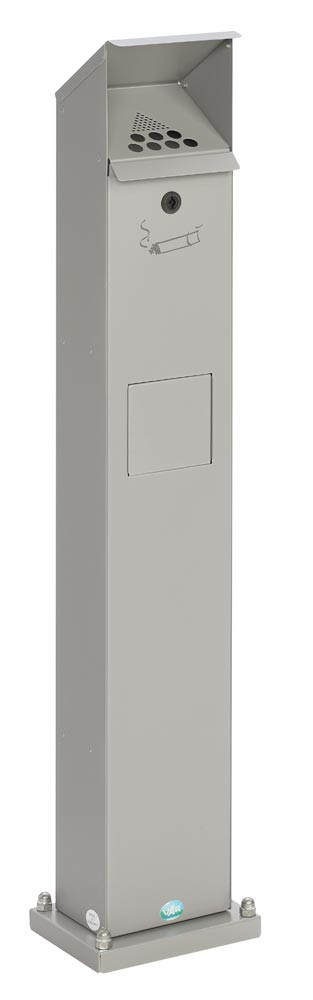 ∙ Zwei getrennte, einzeln entnehmbare Innenbehälter ∙ Volumen 2 Liter Aschereinsatz und 5 Liter Abfallbehälter ∙ Mit selbstschließenden Einwurfklappen, Schutzdach, Schloß und Bodenplatte zum Aufdübeln ∙ Inklusive Montagematerial