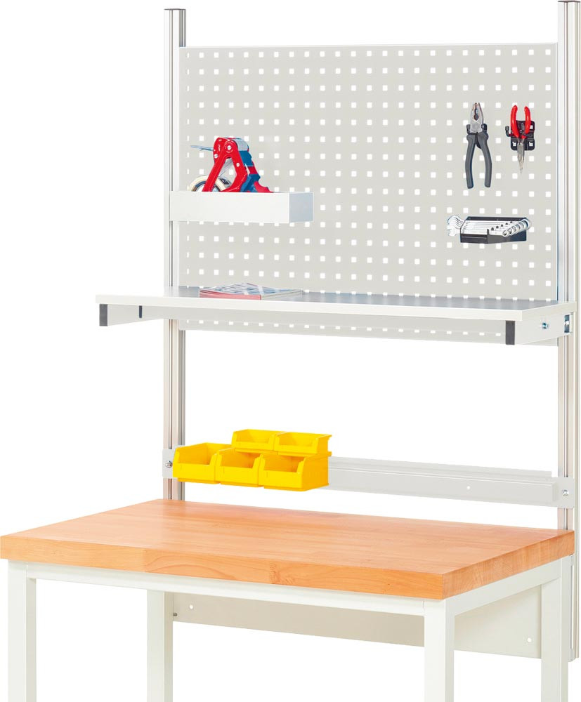 Komplettaufbau für Werkbank B 750 mm mit Etagenbord, Lochplatte H 650 mm, Halteschiene, RAL 7035 EP562820