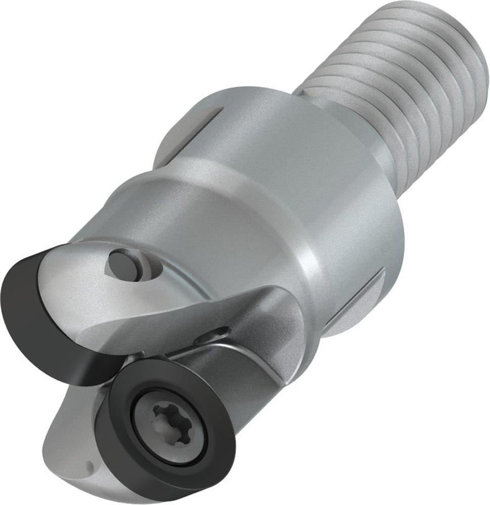 Plan-Kopierfräser mit doppelt negativer Geometrie welche 2 aus RD.. 1003MOT oder RDHT 1003MO-FA einseitige Wendeschneidplatte · Schneiddurchmesser bis maximal 20mm mit M10 Gewindeschaft für standardisierte modulare Trägerwerkzeuge · 28mm funktional und 47mm Einsatzlänge · durchgehende Kühlung zum Planfräsen · Kopierfräsen · Rampen · progressiven Tauchfräsen und helikalen Fräsen mit einer maximalen Schnitttiefe von 2.5mm