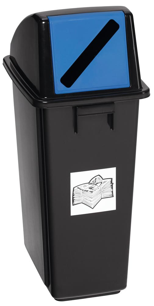 · Mit festmontierter Einwurfklappe, blau für Papier · Inkl. Piktogramm-Aufkleber „Papier