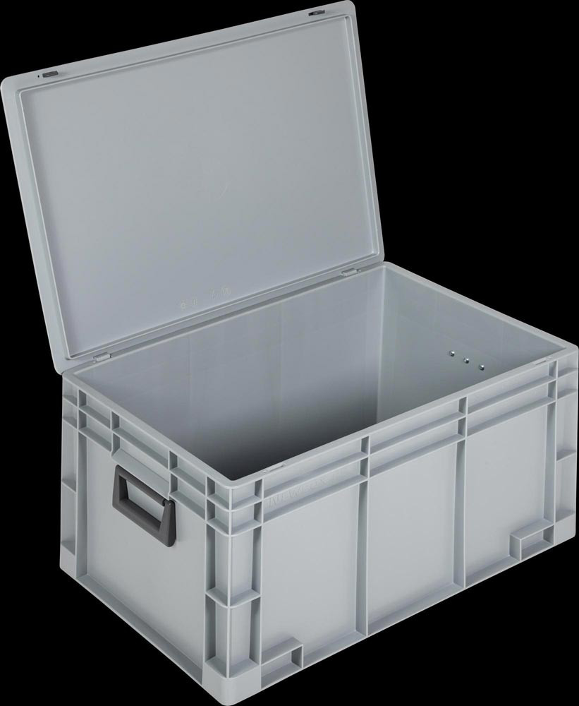Kunststoffkoffer L600xB400xH353 mm PP 2 Griffe Schiebeverschluss grau 70 l E6461685