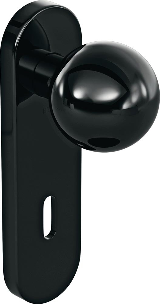 Knopf Modell 123.23R aus Polyamid und Türdrücker in U-Form aus Polyamid mit durchgehendem Stahlkern bis in das Drückerende, durchgängig eingefärbt, Durchmesser 20 mm, mit Ansatzführung und Rastnut, Montage durch einfaches Einrasten der Türdrücker in die auf der Tür vormontierten Unterteile.
