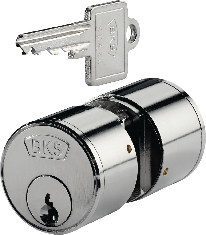 nach DIN 18252 · Normalschließung · neue Ausführung mit Schließnase · massiv Messing · matt vernickelt · 3 Schlüssel + Auslösenadel