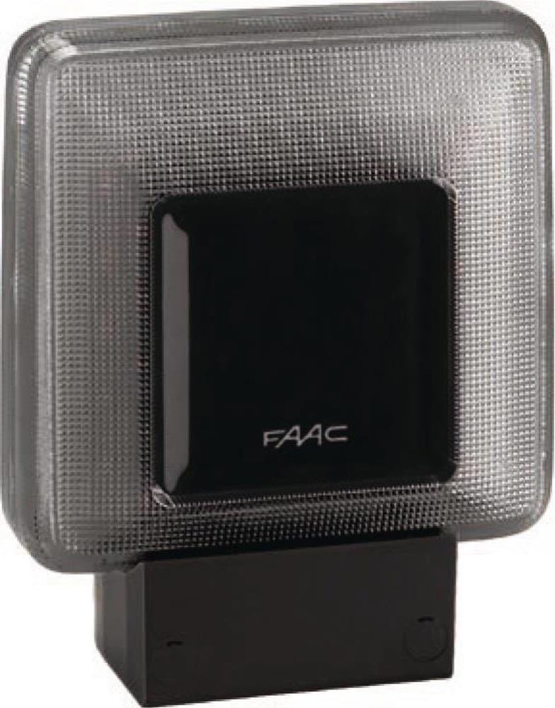 geeignet für den Anschluss an alle FAAC Steuerungen (ausgenommen Antriebe D600/D700/D1000) · Steuerspannungsversorgung mit 24V, 115 V und 230 V möglich · flaches, elegantes Design mit sehr guter Sichtbarkeit auch am Tag durch 40 Hochleistungs- LED · integrierte Antenne für