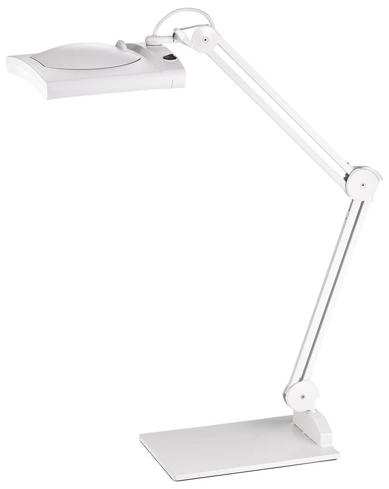 Kunststoff ∙ mit Tischklemme oder Standfuß ∙ optimale Einstellmöglichkeiten des Leuchtenarms durch 3 Gelenke, Standfuß - 2 Schenkel à 300 mm, Tischklemme - 2 Schenkel à 410 mm ∙ eckiger Kopf mit Glaslinse 190,5 mm (7,5”) x 157,48 mm (6,2”) mit Abdeckung ∙ 5 Dioptrien ∙ Betriebsspannung 230 V ∙ Lichtfarbe 6.400 Kelvin - tageslichtweiß ∙ Lichtstrom 1905 Lumen ∙ Lebensdauer - 30.000 Stunden ∙ Effizienzklasse E (Spektrum A bis G) ∙ diese Leuchte enthält eingebaute LED-Lampen ∙ die Lampen können nicht ausgetauscht werden