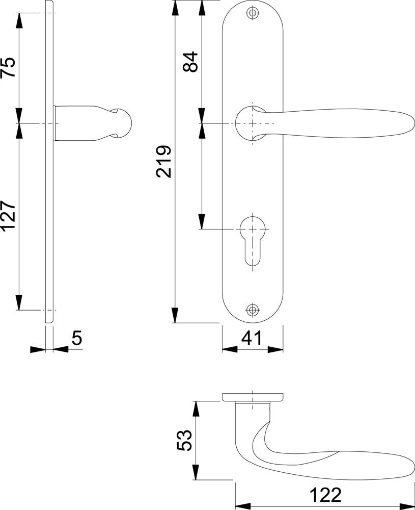 Langschildgarnitur Verona M151/302 Messing F49-R PZ 72 mm DINlinks / rechts E6428229