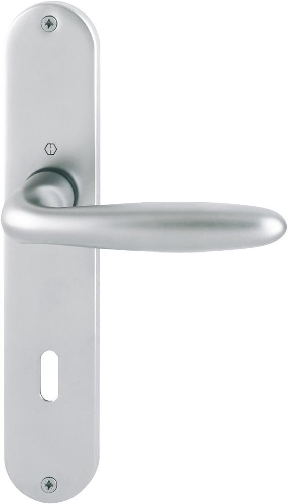 Innentür-Langschild-Garnitur: geprüft nach DIN EN 1906 (Gebrauchs-Kategorie Klasse 3) · Türgriffe mit 8 mm Schnellstift-Verbindung (mit Vollstift) für Türstärke 37 - 42 mm · Schilder sichtbar verschraubt · Entfernung 72 mm · Anschlagrichtung DIN links / rechts