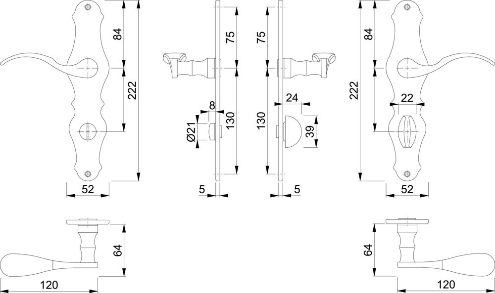 für Zimmertüren · mit Profilstift-Verbindung und 8 mm Vierkant · für Türstärke 36-54 mm