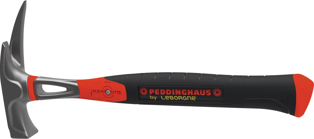 40 % weniger Vibrationen dank patentiertem Leborgne Nanovib® System · Stiel aus hochresistetem Stahl gegen Fehlschläge · rutschfeste Griffzone · seitliche Schlagflächen · Scharfe obere Kanten