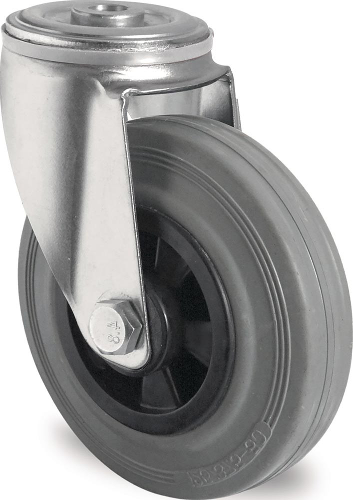 Lenkrolle Rad-Ø 125 mm Tragfähigkeit 100 kg Rückenlochbefestigung Polypropylen Rollenlager Vollgummi grau
