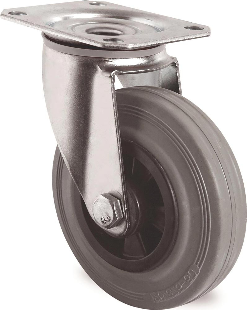Lenkrolle Rad-Ø 125 mm Tragfähigkeit 100 kg mit Anschraubplatte Polypropylen Vollgummi grau E6497458