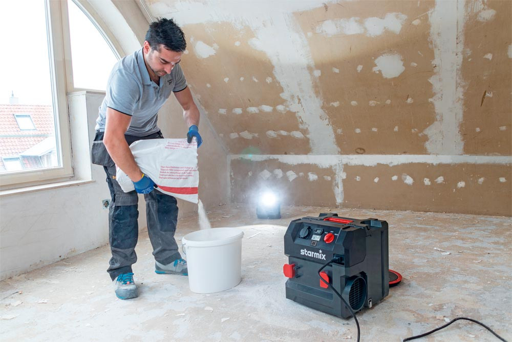 Filtert effektiv Staub aus der eingesaugten Luft und gibt sie gereinigt an die Umgebung zurück ∙ Trägt aktiv zur Vermeidung und Reduzierung von Schäden durch Staub gemäß TRGS 504 bei ∙ Hervorragend geeignet für herausfordernde Baustoffe wie einatembare und lungengängige Stäube, z. B. Beton-, Gips- und Hartholzstäube ∙ Werkzeugloser Filterwechsel ∙ Betriebsstundenzähler und Anzeige bei Volumenstromunterschreitung ∙ Anschluss für Abluft- und Zuluftschlauch ∙ 2-stufiges Filtersystem – HEPA Filter H13 und Vorfilter ∙ Steckdose zum Anschließen von Elektrowerkzeugen oder für Reihenschaltung mehrerer Bauluftreiniger ∙ Zwei Leistungsstufen Eco oder Max ∙