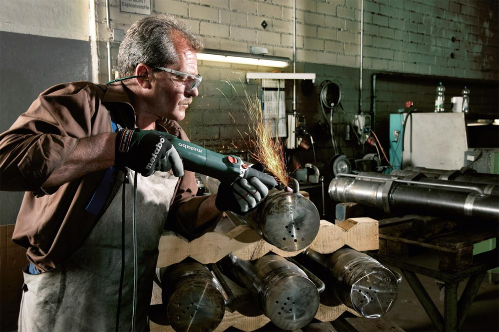 Ausführung: Geradschleifer ideal zum Schleifen von Innen- und Außenflächen in Verbindung mit Lamellenschleifern ∙ Spindelarretierung zum einfachen Werkzeugwechsel ∙ Aluminiumdruckguss-Lagerflansch für lange Lebensdauer der Maschine ∙ Vario-Constamatic (VC)-Elektronik zum Arbeiten mit materialgerechten Drehzahlen, die unter Last nahezu konstant bleiben ∙ Stellrad zur Vorwahl der Drehzahl ∙ Elektronische Sicherheitsabschaltung ∙ Wiederanlaufschutz ∙ Elektronischer Überlastschutz ∙ Präzisionsspannzange für exakten Rundlauf ∙ Marathon-Motor mit patentiertem Staubschutz für lange Lebensdauer ∙ E 916 525: Hohes Drehmoment durch robustes Planetengetriebe