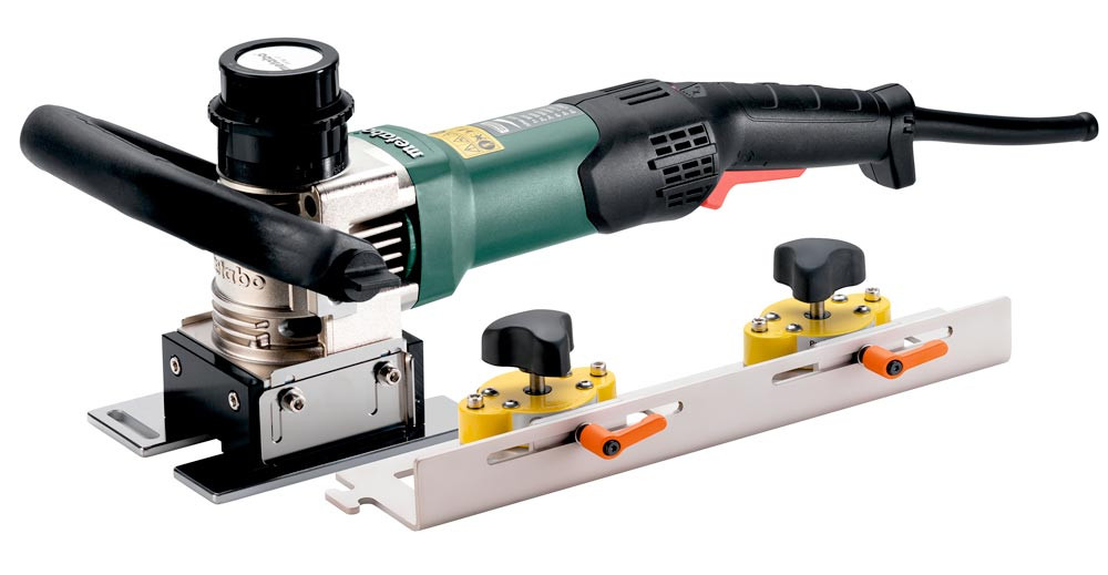 Ausführung: Metall-Planfräse zum schnellen, sauberen Entfernen von Schweißraupen in einem Arbeitsschritt ∙ One-touch Controller: patentierte, werkzeuglose Frästiefeneinstellung in 0,1-mm-Schritten ∙ Sekundenschnell einsatzbereit dank werkzeuglos fixierbarer, magnetischer Führungsschiene (50 cm lang, erweiterbar) ∙ Einfacher, bequemer Wechsel der Wendeplatten am Fräskopf ∙ Schlanker Griffbereich und großer, werkzeuglos verstellbarer Bügelgriff für sicheres, gleichmäßiges Führen ∙ Vario-Tacho-Constamatic (VTC)-Vollwellenelektronik mit Stellrad: zum Arbeiten mit materialgerechten Drehzahlen, die unter Last konstant bleiben ∙ Elektronischer Sanftanlauf und Wiederanlaufschutz