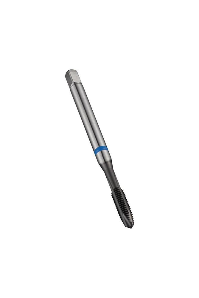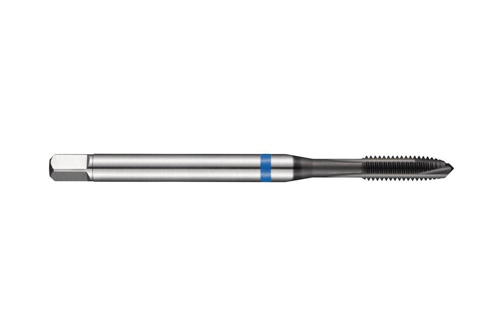 Spiralpunkt Gewindebohrer Blue Shark · Anschnittform B mit 3.5-5xP Gewindeanschnitt · ISO-Metrisches Gewinde M8 mit 1.25 mm Steigung und 6H Toleranzklasse · Abmessungen nach DIN 371 Standard mit 8.0mm Schaft und 6.2mm Vierkantantrieb · HSSE-PM mit Super-B Beschichtung 2.5xD Durchgangsgewinde in Ferritischer · Martensitischer und Austenitischer Edelstahl