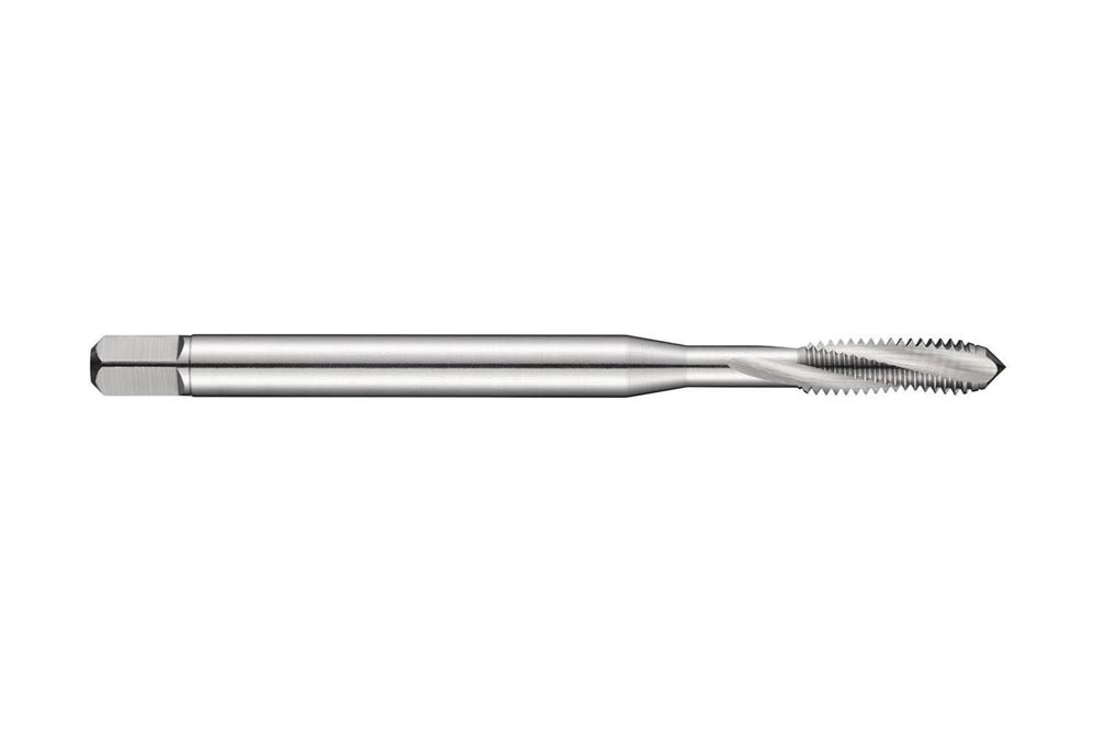 Spiral genuteter Gewindebohrer · Anschnittform C mit 2-3xP Gewindeanschnitt · ISO-Metrisches Gewinde M6 mit 1.00 mm Steigung und 6H Toleranzklasse · Abmessungen nach DIN 371 Standard mit 6.0mm Schaft und 4.9mm Vierkantantrieb · HSSE-PM mit blanker Oberfläche und 15° Helixwinkel 1.5xD Sacklochgewinde in legierter