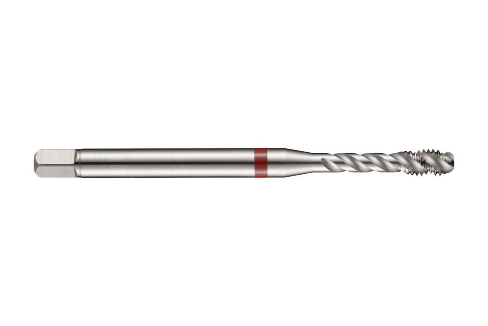 Spiral genuteter Gewindebohrer Red Shark · Anschnittform C mit 2-3xP Gewindeanschnitt · ISO-Metrisches Gewinde M6 mit 1.00 mm Steigung und 6H Toleranzklasse · Abmessungen nach DIN 371 Standard mit 6.0mm Schaft und 4.9mm Vierkantantrieb · HSSE-PM mit blanker Oberfläche und 45° Helixwinkel 2.5xD Sacklochgewinde in Kohlenstoffstahl · legierter und Werkzeugstahl