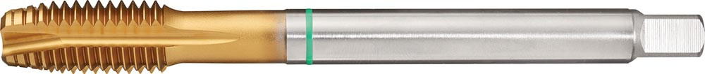 HSS-Co · Form B · Typ UNIVERSAL · TiN-beschichtet · Grünring · geradegenutet · Flanken hinterschliffen · metrisches ISO-Gewinde · DIN 13 Blatt 1 · Toleranzfeld ISO2 (6H) · mit Schälanschnitt für Durchgangsgewinde · für Stahl, rostfreie Stähle, Sphäroguss und NE-Metalle