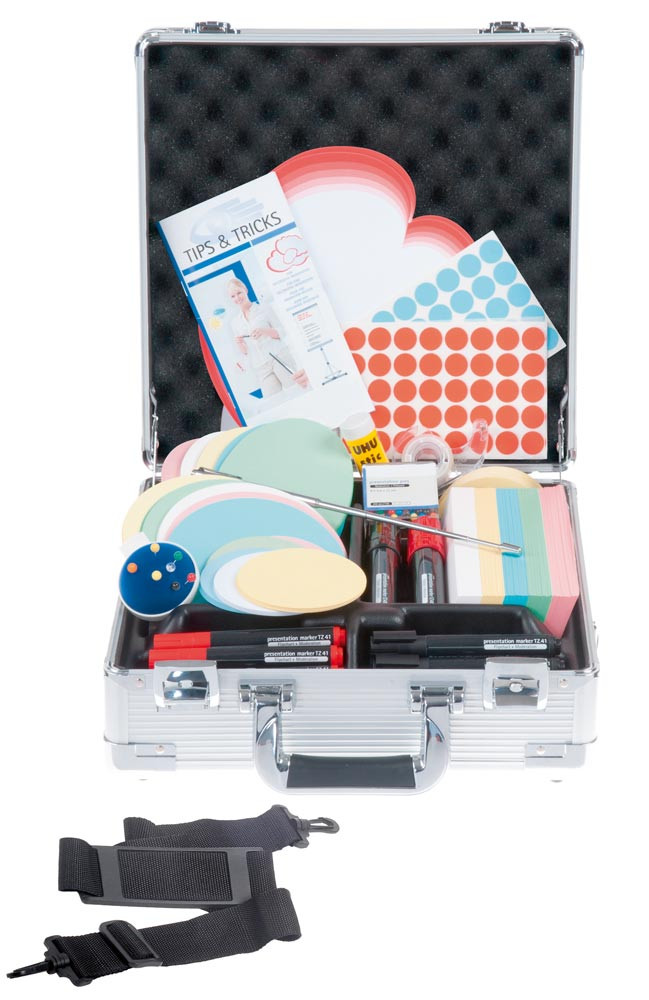 · Kompakter Koffer mit dem wichtigsten Moderationszubehör, sicher und sofort griffbereit aufbewahrt · Moderationskarten sind FSC ® zertifiziert ∙ Stabiler Aluminiumkoffer mit verstellbarem Schultergurt · Abschließbar, inkl. 2 Schlüssel · B x T x H 350 x 140 x 350 mm · Gewicht ca. 5 kg