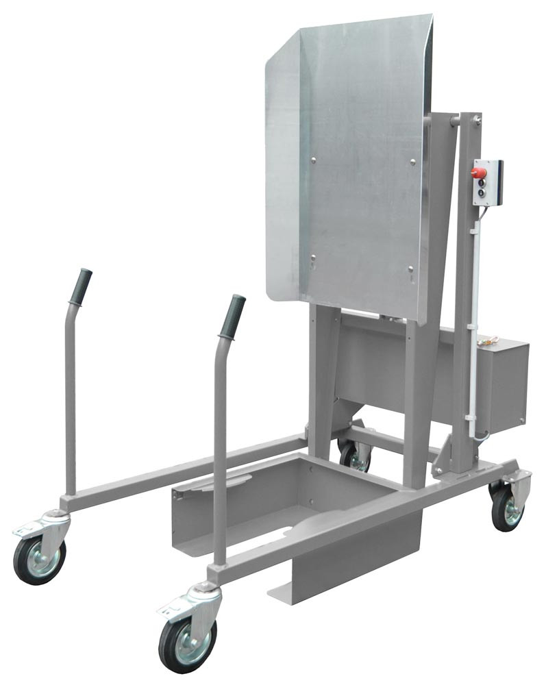 · Zur Entleerung und Reinigung von 120- und 240 Liter Mülltonnen · Kippwinkel bis 135° · Ausschütthöhe ca. 1480 mm · 2 Lenk- und 2 Bockrollen aus Vollgummi, Ø 180 mm, Lenkrollen mit Feststeller, Bauhöhe 225 mm · Traglast 110 kg