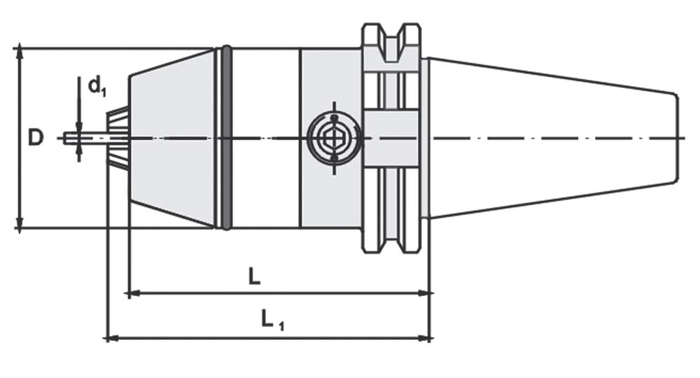 mit Steilkegel DIN 69871 Form A · zum Einsatz auf Fräsmaschinen · schneller, unkomplizierter Werkzeugwechsel durch Betätigung eines Kegeltriebs mittels seitlich einsteckbarem Quergriff-Stiftschlüssel, so dass ein Werkzeugwechsel auch direkt in der Maschine möglich ist · kein Öffnen des Futters während des Laufs oder bei abruptem Spindelstopp · Schaft und Futter bilden eine Einheit, dadurch kurze, stabile und schwingungsfreie Ausführung · Standardausführung mit hoher Rundlaufgenauigkeit max. 0,05 mm · für Rechts- und Linkslauf