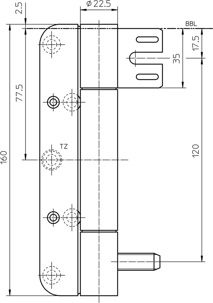 Objektband VARIANT VN 8938/160 U FD Edelstahl matt gebürstet 160 kg 22,5 mm DINlinks gefälzte Türen