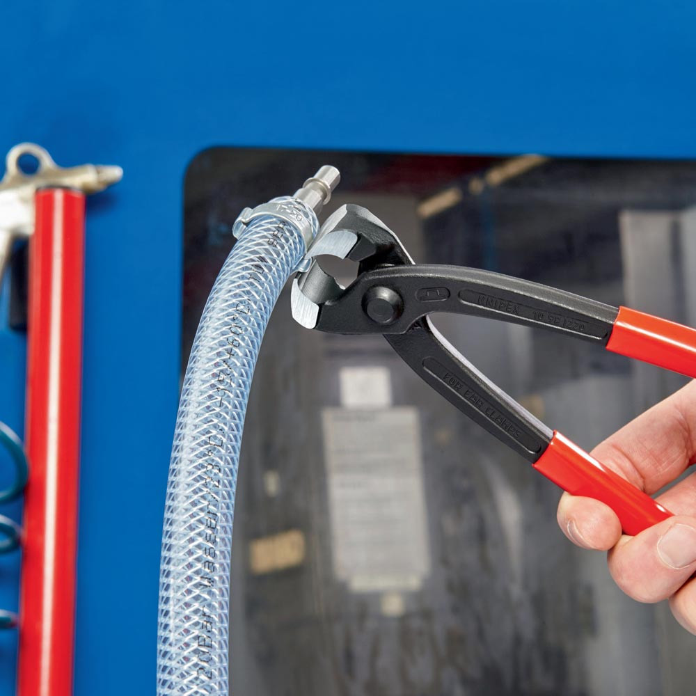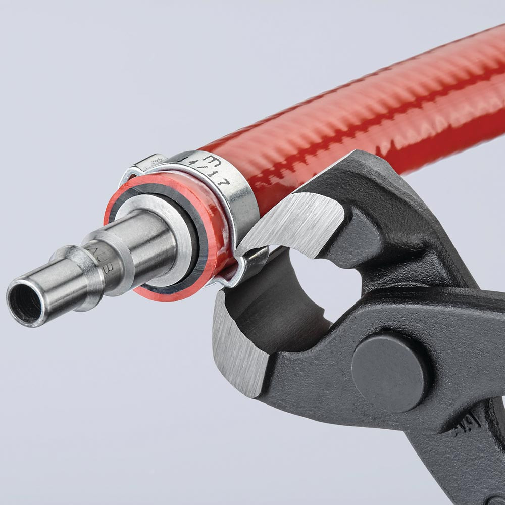 zum einfachen und zuverlässigen Befestigen von 1-Ohr- und 2-Ohrklemmen (System Oetiker oder ähnlich) · vielfältig einsetzbar für Klemmen an Achsmanschetten, Kühler- und Kraftstoffleitungen, Luftdrucksystemen, Kompressoren · Spezial-Werkzeugstahl in Sondergüte, geschmiedet, ölgehärtet