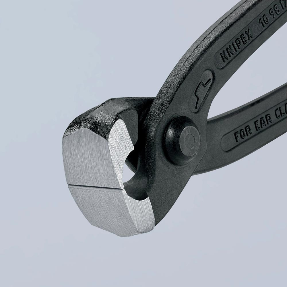 Ohrklemmenzange Gesamtlänge 220 mm Kopf schwarz atramentiert Kunststoff-Überzug seitliche Pressnase E6438775