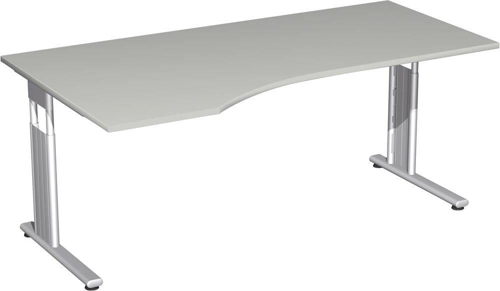 PC-Schreibtisch, BxTxH 1800x1000x680-820 mm, links 425 mm, höhenverstellbar, Platte lichtgrau, C-Fuß-Gestell silber