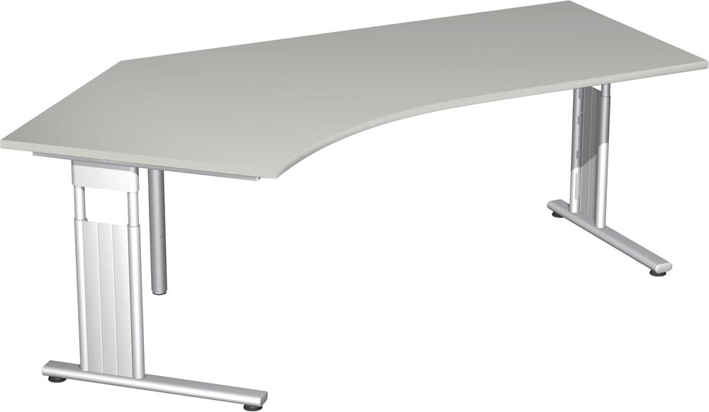 PC-Schreibtisch, BxTxH 2166x1131x680-820 mm, links 800 mm, höhenverstellbar, Platte lichtgrau, C-Fuß-Gestell silber