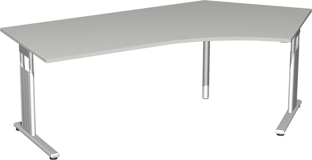 PC-Schreibtisch, BxTxH 1800x1000x680-820 mm, links 425 mm, höhenverstellbar, Platte lichtgrau, C-Fuß-Gestell silber EP531293