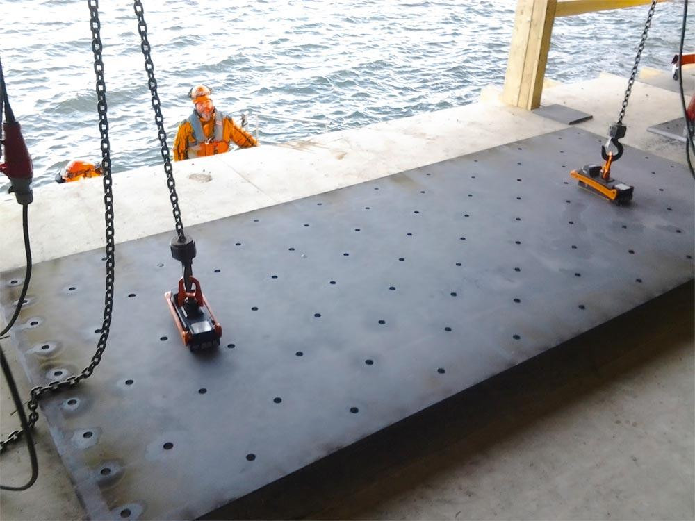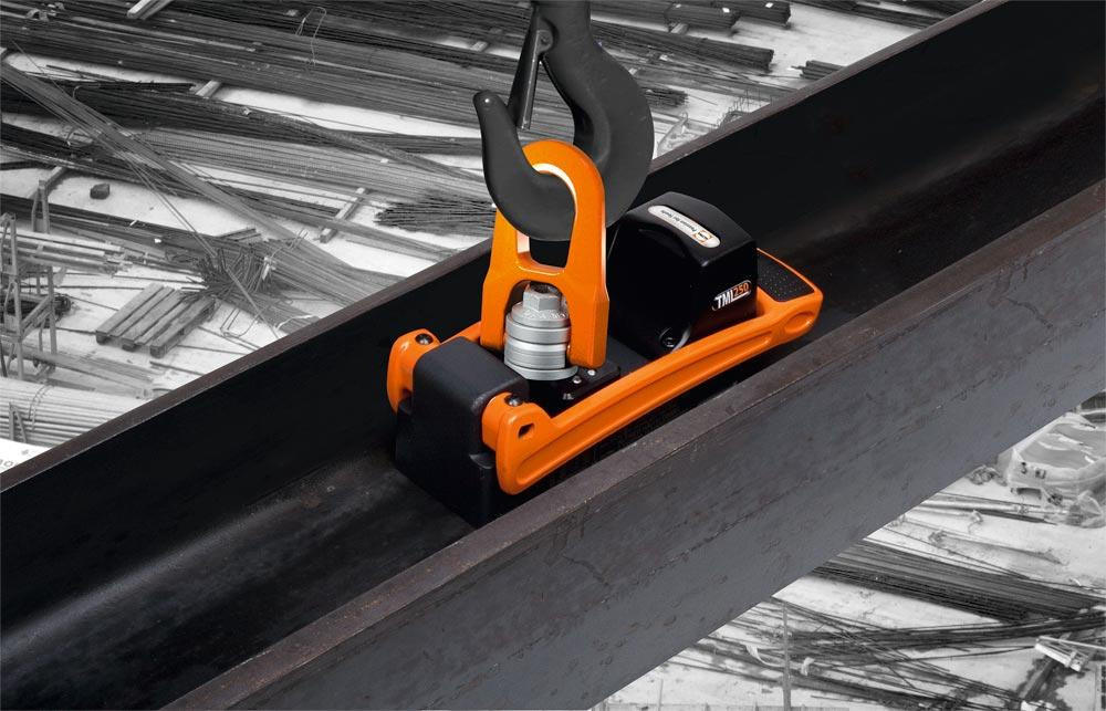 Ausführung: Völlig neues Einhebel-Bedienkonzept mit minimalen Kraftaufwand ∙ Überragende Leistungseigenschaften auf dünnwandigen Materialien – 90 kg Hebekraft schon ab 3 mm Materialstärke bei 3fachem Sicherheitsfaktor ∙ Bis zu 70 % weniger Eigengewicht gegenüber herkömmlichen Magneten ∙ 360° dreh- und schwenkbarer Lasthaken ∙ Gehärtete, TIN-beschichtete Magnethaltefläche